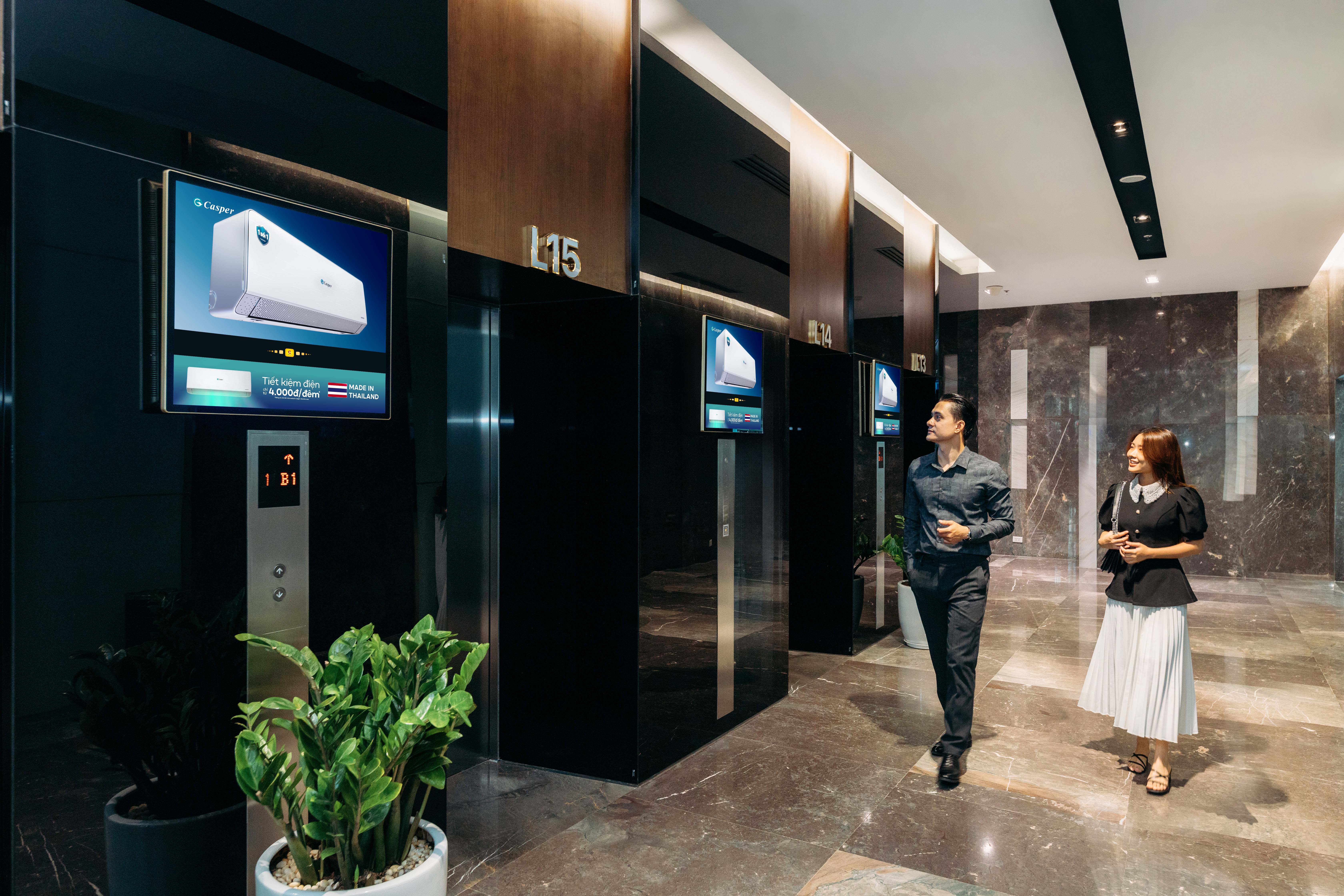 Hệ thống màn hình hiện đại được lắp tại sảnh tại các toà nhà hạng A,B các thành phố lớn.