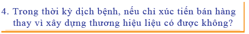 Các chương trình khuyến mãi ngắn hạn có thể tạm thời thúc đẩy doanh số bán hàng, nhưng về lâu dài, thương hiệu mới là động lực có thể tạo ra doanh số bán hàng ổn định cho các công ty đầu tư vào các hoạt động khuyến mại ngắn hạn.