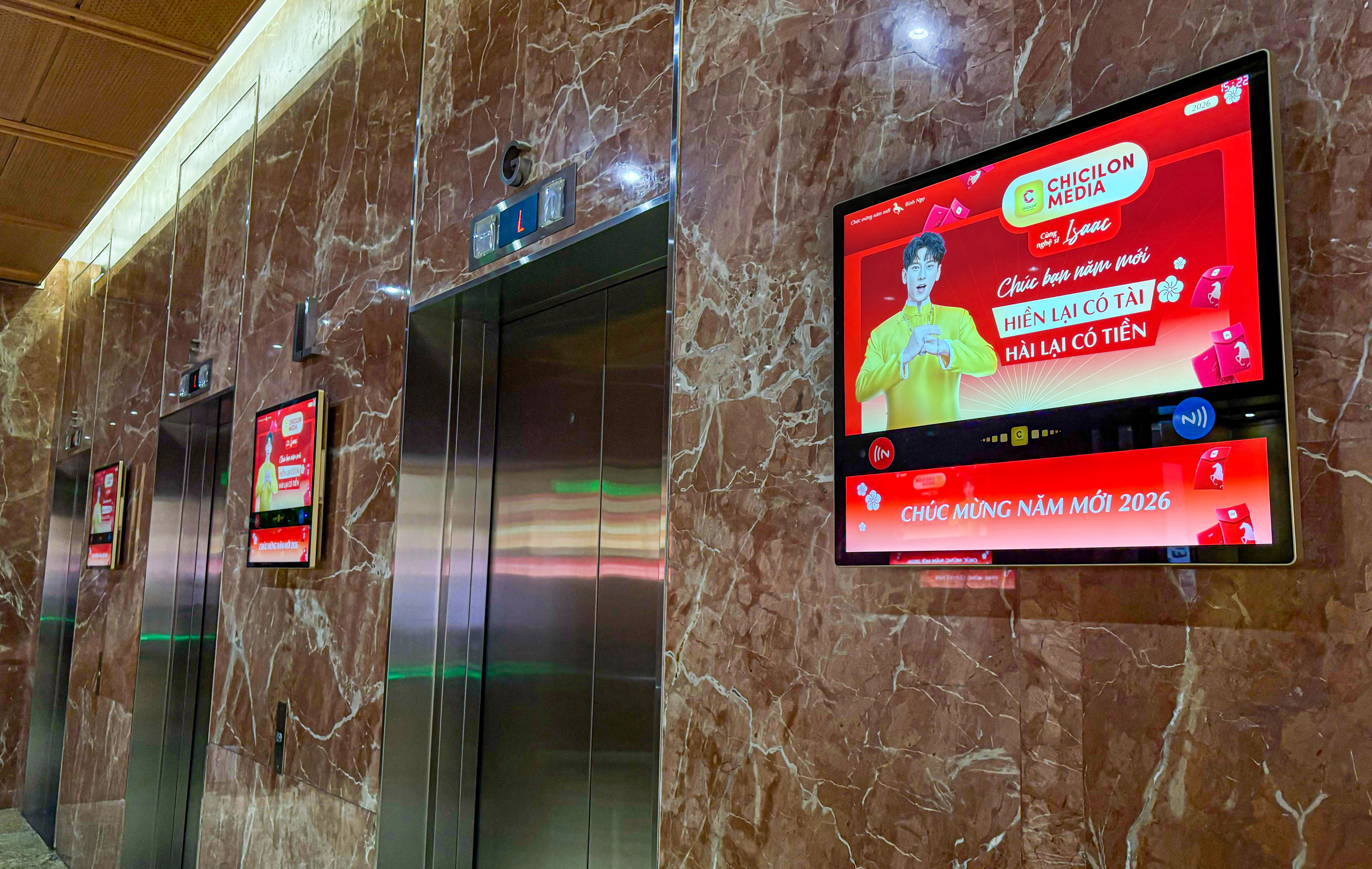 Trước hết, môi trường thang máy hạn chế sự phân tâm từ các nền tảng khác. Người xem không có quá nhiều lựa chọn để “lướt qua”, nhờ đó thông điệp được tiếp nhận trọn vẹn trong suốt thời gian chờ. Bên cạnh đó, tần suất lặp lại cao giúp gia tăng khả năng ghi nhớ. Nhân viên văn phòng và cư dân chung cư tiếp xúc với màn hình nhiều lần mỗi ngày, đặc biệt trong giai đoạn cận Tết khi nhịp di chuyển tăng mạnh. Cuối cùng, hệ thống màn hình phủ rộng tại các khu văn phòng và chung cư cao cấp ở những thành phố lớn - nhóm đối tượng có sức mua cao và đóng vai trò quyết định trong nhiều ngành hàng mùa lễ hội. Với những ưu điểm đó, chiến dịch Tết 2026 có thể được xem như một lát cắt cho thấy cách truyền thông thang máy đang được nâng cấp về vai trò.